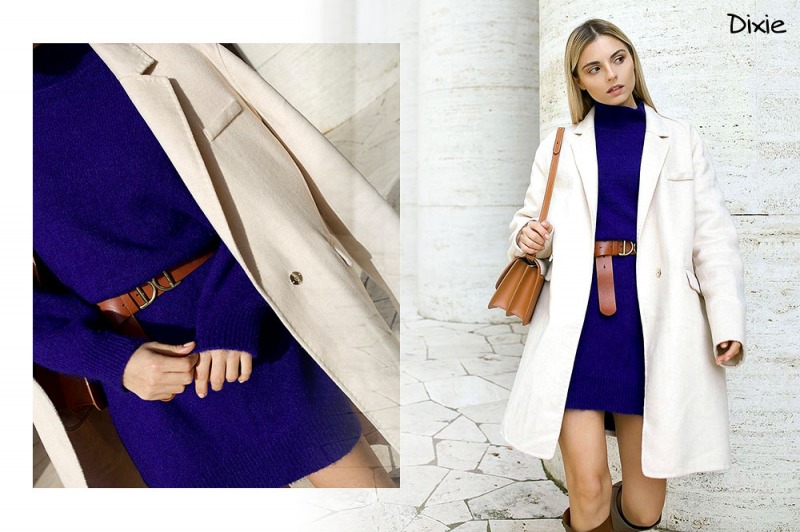 Ad esempio, i colori uniti e contrastanti e la morbida eleganza del cappotto total-white di Dixie, rendono speciale l’outfit invernale.