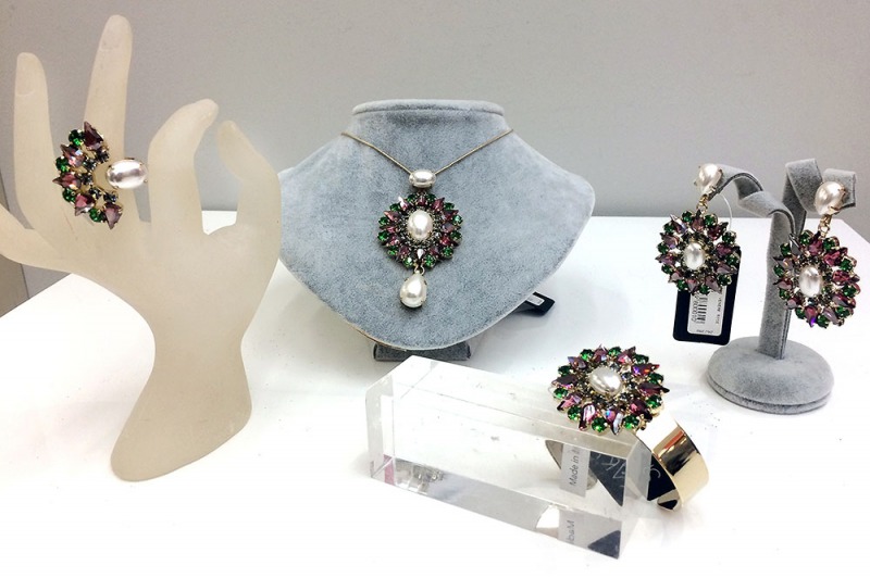 La parure di girocollo e orecchini con bracciale, splendido punto luce sulle nostre mani, valorizza la femminilità.