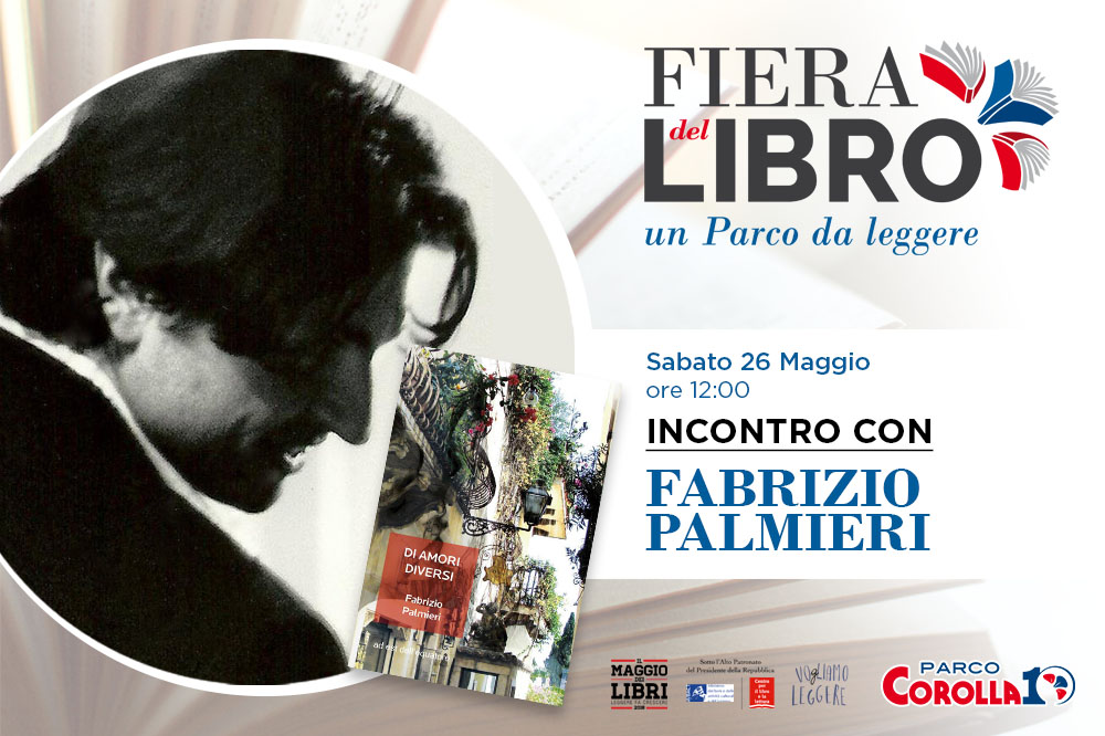 Sabato 26 Maggio 2018 dalle ore 12:00 in occasione della 'Fiera del Libro' al Parco Corolla, sarà presente l'autore Fabrizio Palmieri che presenterà il suo libro “Di amori diversi”, a cura della libreria Doralice. Dialogherà con l'autore la scrittrice Eliana Camaioni.
