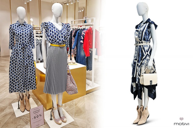 Motivi dedica la nuova capsule proprio a questo duo, contornato dalle protagoniste indiscusse della primavera: “le righe”e dalle fantasie tra le quali spicca quella “foulard”.