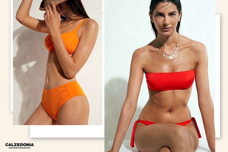 I colori proposti dalla linea di Calzedonia ci riportano ai colori luminosi dell'estate: il rosso e l'arancio del sole o il turchese e blu del mare