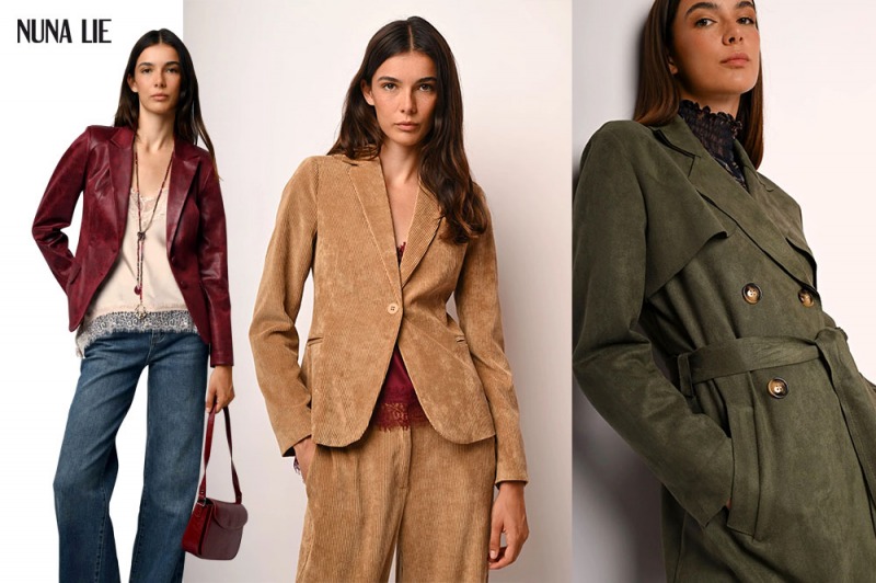 La nuova collezione Nuna Lie si distingue per le linee femminili, le colorazioni calde e naturali – come cammello, bordeaux, verde oliva e grigio fumo – e per i dettagli curati, come cinture in vita, bottoni dorati e tessuti effetto soft touch. Ogni capo è pensato per valorizzare la silhouette e accompagnare la donna Nuna Lie in ogni momento della giornata: dal lavoro al tempo libero, fino alle uscite serali.